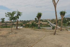 El trabajo comenzó con la eliminación de todas las especies invasoras presentes en el parque periurbano, una acción fundamental para proteger la biodiversidad local y permitir que las especies autóctonas recuperen su espacio. Además, se realizó la poda y el tratamiento fitosanitario de los pinos y palmitos, y se potenció el matorral noble, especialmente el lentisco, logrando así un entorno equilibrado y adaptado a las necesidades del proyecto.